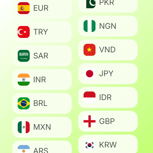 Instantly deposit and withdraw in your local currency